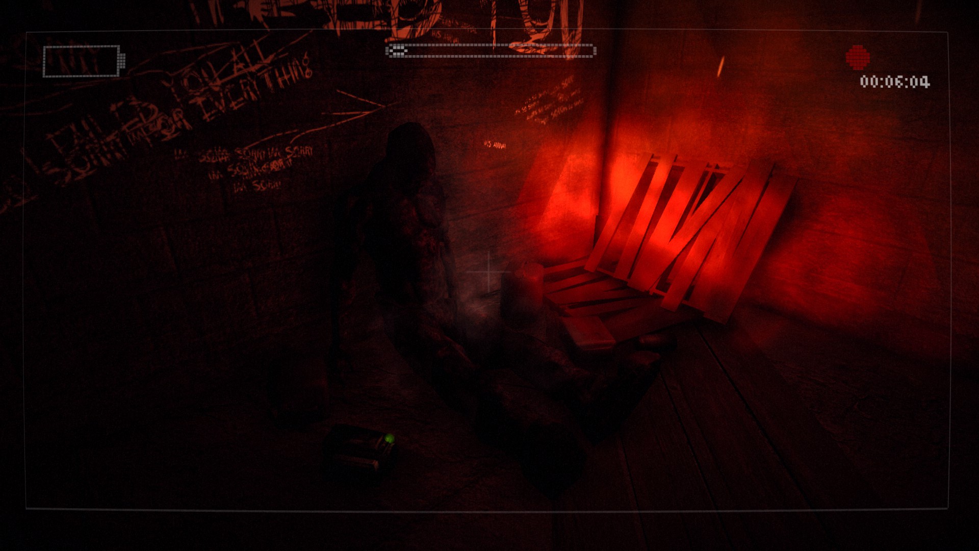The gimmick of the well-dressed monster hunting you in the forest was a resounding success in Slender: The Eight Pages, and that has not been forgotten. Although the search for your friend drives the story forward, you are still never given a moment’s peace in wake of the Slenderman. From the erratic crunching of grass underfoot to the way your flashlight catches the pine trees as you pan your surroundings, everything is designed to frighten the hell out of you. And it so works. As you progress, ominous pictures flash across your HUD, your camera starts stuttering and then fully distorts as the sightless terror edges closer towards you.