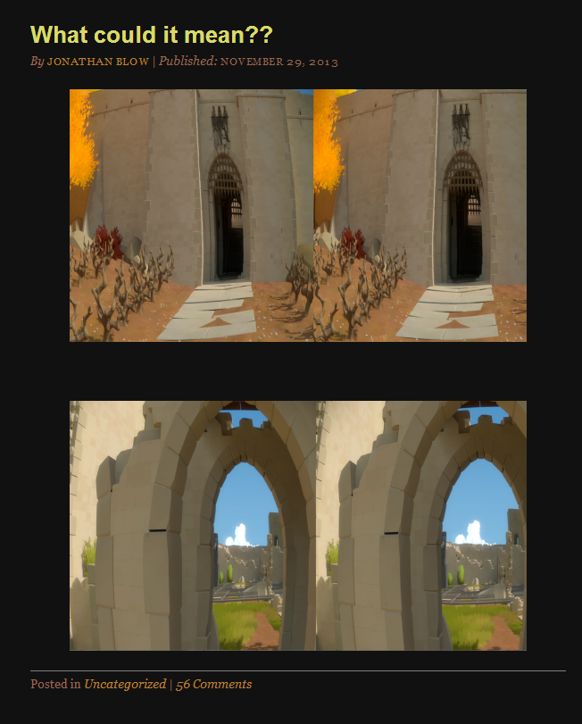 Sony shouldn’t be too worried though – and by the looks of things, they aren’t. The Witness, an open world platformer for the PS4, posted on their front page what looks like stereoscopic images of the map – a 3D format which a virtual reality headset extension might use. Oculus Rift, anyone?
